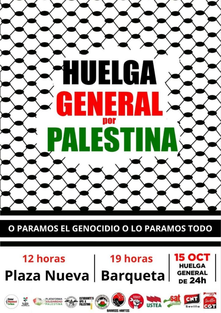 15 de octubre: huelga, protesta y exigencia de justicia para Gaza.